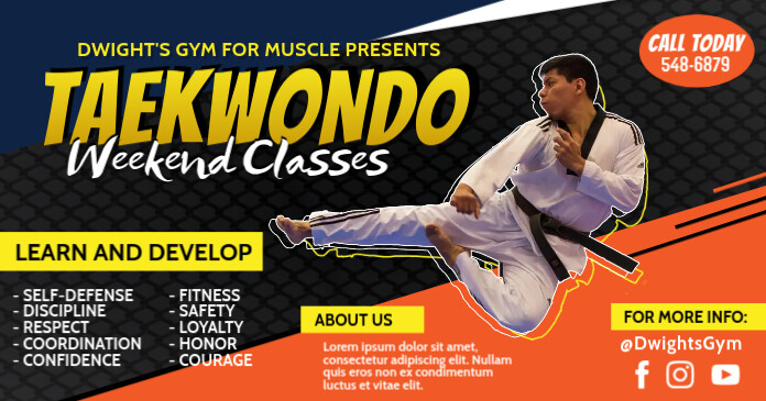 Orange Taekwondo Classes Facebook Post Templa Template Postermywall